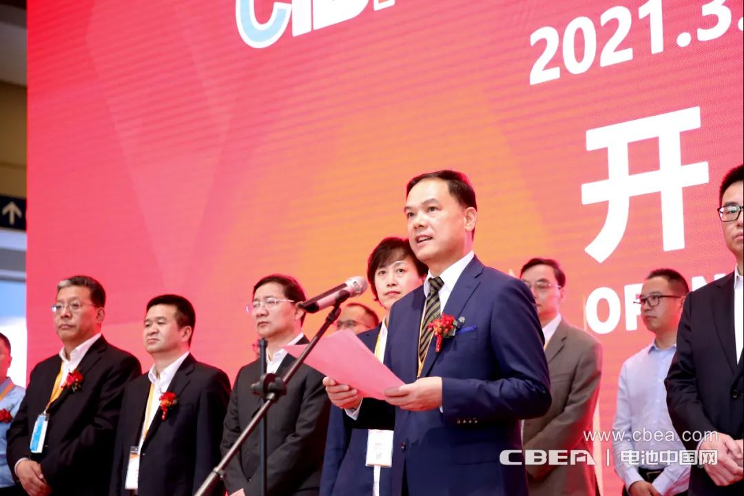 中电科能源有限公司总经理郑宏宇、中国电子科技集团公司第十八研究所所长朱立宏、中国诚通副总裁/天津力神电池股份有限公司党委书记/董事长童来明、深圳市比亚迪锂电池有限公司副总经理张寿波、风帆有限责任公司党委书记/董事长李勇、惠州亿纬锂能股份有限公司总裁刘建华、江苏海四达集团有限公司总经理沈晓彦、双登集团股份有限公司执行总裁杨宝峰、上海空间电源研究所所长朱凯、武汉力兴(火炬)电源有限公司董事长许斌、理士国际技术有限公司首席技术官董捷、深圳雄韬电源股份有限公司总裁张华农、贵州航天江南集团有限公司科技委副主任魏俊华、天津巴莫科技股份有限公司总经理吴孟涛等出席CIBF2021展览会开幕式。