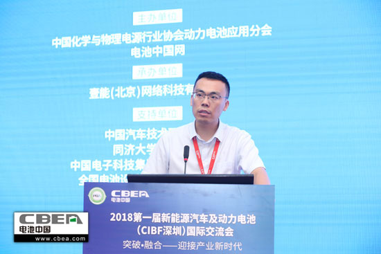 图为重庆长安汽车新能源动力研究院电池开发所所长刘波发表主题演讲