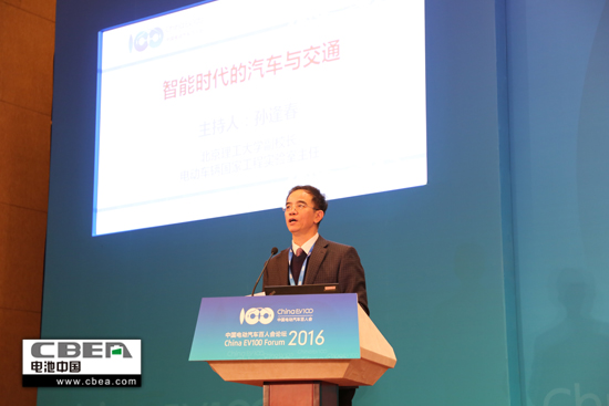 2016年1月23日,由中国电动汽车百人会主办,清华大学、中国汽车工业协会、中国汽车技术研究中心、中国汽车工程学会协办的中国电动汽车百人会论坛(2016)在北京钓鱼台国宾馆正式召开。北京理工大学副校长、电动车辆国家工程实验室主任孙逢春主持“智能时代的汽车与交通”主题论坛。