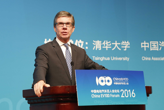 2016年1月23日,由中国电动汽车百人会主办,清华大学、中国汽车工业协会、中国汽车技术研究中心、中国汽车工程学会协办的中国电动汽车百人会论坛(2016)在北京钓鱼台国宾馆正式召开。宝马集团大中华区总裁兼CEO康思远表示,便捷的电动汽车生态系统可以促进市场向新能源汽车方向发展。以下为发言全文: