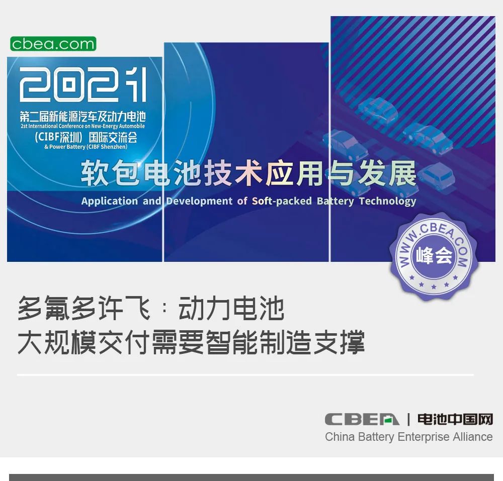 日前,“第二届新能源汽车及动力电池(CIBF2021深圳)国际交流会”在深圳举行,在由多氟多冠名的“智能制造助推软包电池提质降本”专场论坛上,多氟多新能源科技有限公司总经理许飞发表了主题为“多氟多动力电池智能制造新进展”的演讲。