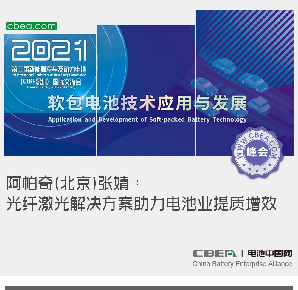 日前,“第二届新能源汽车及动力电池(CIBF2021深圳)国际交流会”在深圳举行,在由多氟多冠名的“智能制造助推软包电池提质降本”专场论坛上,阿帕奇(北京)光纤激光技术有限公司应用部经理张婧发表了主题为“光纤激光解决方案助力电池行业提质增效”的演讲。
