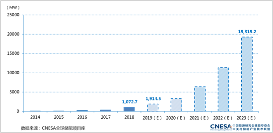 CNESA研究部自2014年起对中国储能市场规模进行预测,五年来,在行业专家和储能企业的支持下,研究部已积累了一定经验。我们将在《储能产业研究白皮书2019》中对2019-2023年中国储能市场的规模和发展趋势进行预测。
