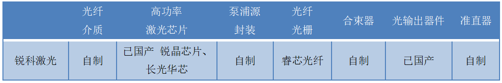 锐科激光核心器件及材料自制情况