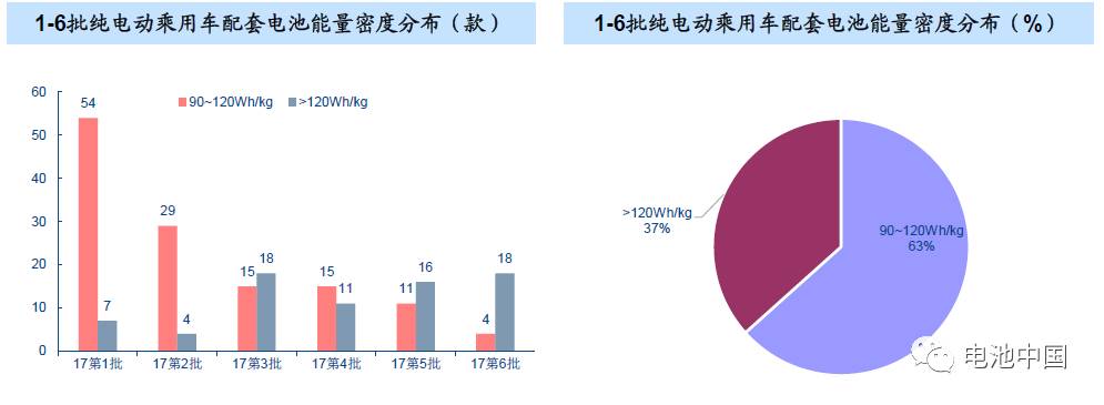 那么,到2020年这一能量密度“小目标”能否实现呢?我们或许可以从前6批新能源推荐车型的配套情况中一窥究竟。