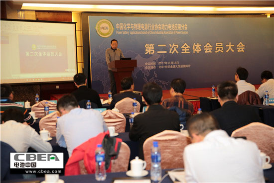 图为中国化学与物理电源行业协会动力电池应用分会第二次全体会员大会会议现场