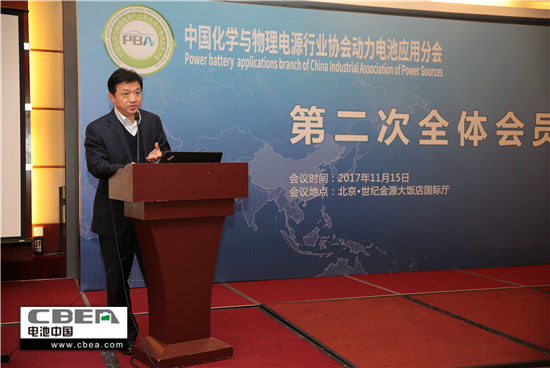 图为中国化学与物理电源行业协秘书长刘彦龙致辞
