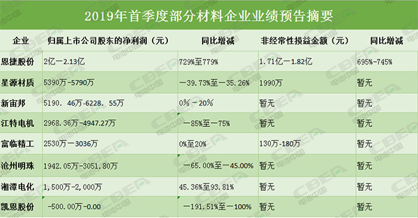 图为2019年首季度部分材料企业业绩预告摘要