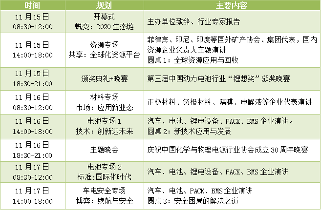 峰会期间还将举办多场国际商务洽谈交流会;“第三届‘锂想奖’颁奖盛典”及“庆祝中国化学与物理电源行业协会成立30周年”纪念活动也将同期举行。