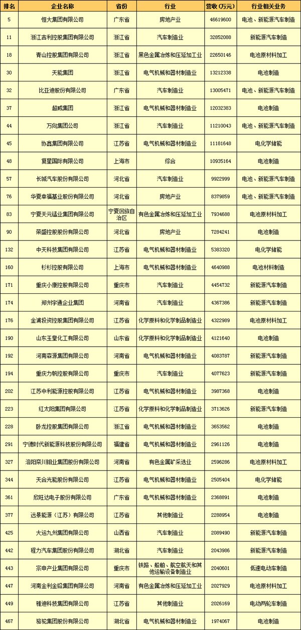 电池中国网将“2019中国民营企业500强”榜单中涉及到的电池产业链企业整理如下: