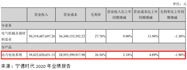 另外,宁德时代年报还显示,其海外市场电池销售收入2020年毛利率达到32.69%,而同期国内市场毛利率只有26.84%。