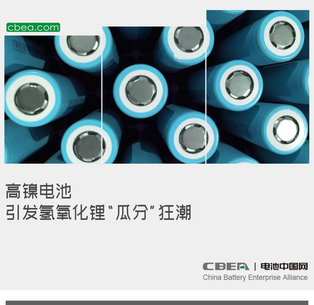 高镍电池渗透率的快速提升,引发特斯拉、宁德时代、比亚迪、亿纬锂能等巨头抢镍大战的同时,行业对氢氧化锂的瓜分狂潮也愈发猛烈。