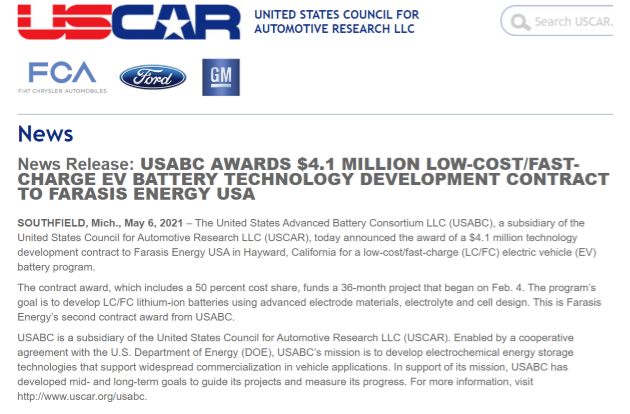 图为孚能科技获USABC 2665万元电池技术开发合约公告