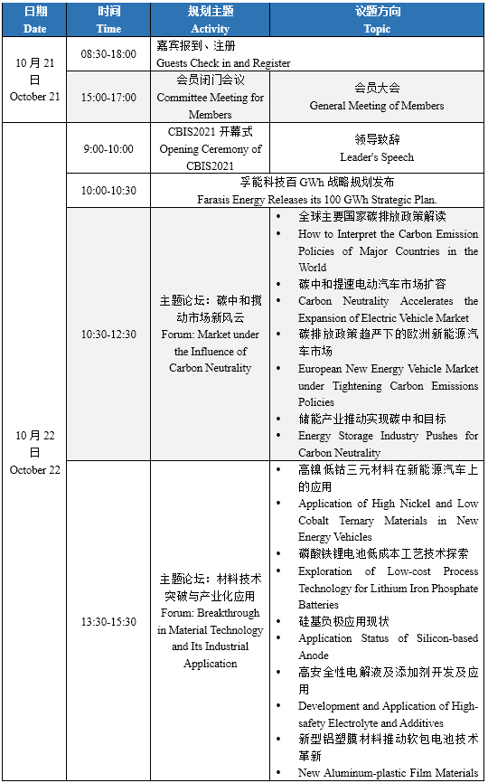会议名称:第六届动力电池应用国际峰会(CBIS2021)