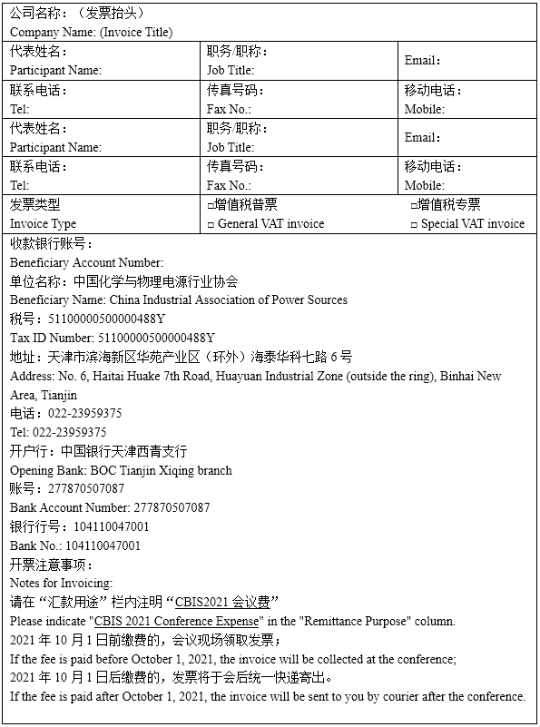 (After filling in your Participant Receipt Form, please send it to: cbis2021@cbea.com)