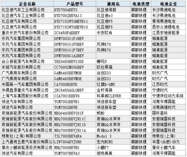 本批次中,宁德时代提供的磷酸铁锂电池主要配套车型有特斯拉Model 3、红旗E-QM5、广汽乘用车合创Z03、小鹏P7等。