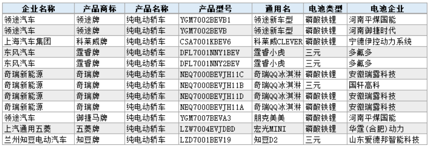 本批次中,另一大主力磷酸铁锂电池车型主要为宏光MINI EV车型的“跟随者”。