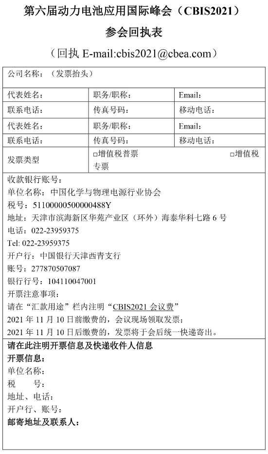 第六届动力电池应用国际峰会(CBIS2021)组委会制