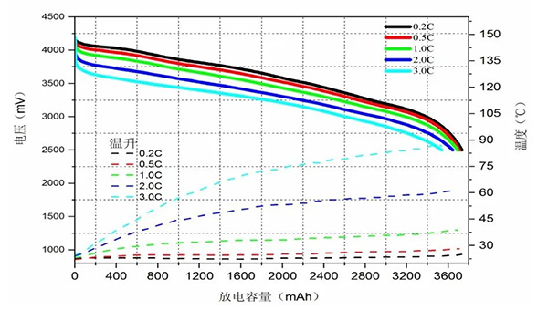 猛狮科技18650-38P动力电芯在不同放电倍率下的温度曲线
