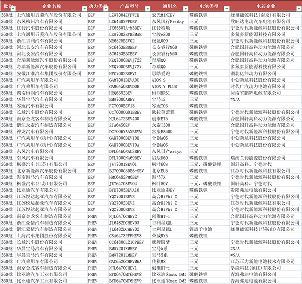 在第360批次中,上汽通用五菱再次申报了1款宏光MINI EV车型,电池配套企业为蜂巢能源,电池类型为磷酸铁锂。