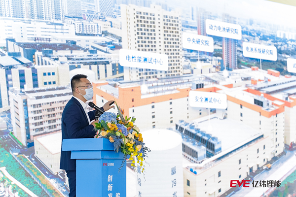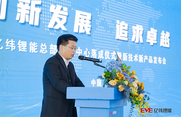 亿纬锂能动力电池研究院院长何巍博士,向现场的领导、来宾介绍亿纬锂能总部研发中心项目概况。