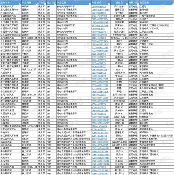 其中,纯电动产品共有95家企业的247个型号、插电式混合动力产品共有12家企业的27个型号,燃料电池产品共有13家企业的17个型号。