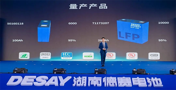 以安全为例,湖南德赛电池280Ah和100Ah两款产品应用了公司自主研发的安全阻燃技术、安全阻断技术、预锂/补锂技术,产品已通过GB/T32676 、UL1973/UL9540A 、IEC 62619、UN 38.3和ROHS等各项认证,产品具有高安全、长循环和高能效优势。