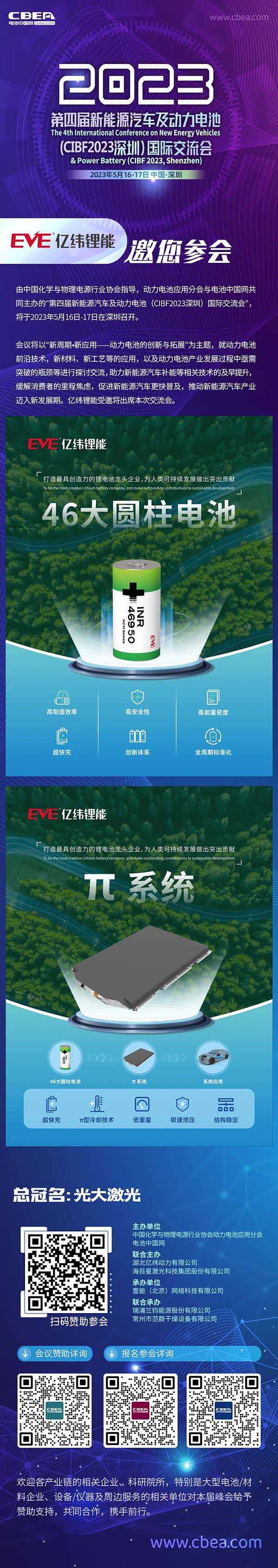 亿纬锂能邀您参加第四届新能源汽车及动力电池(CIBF2023深圳)国际交流会