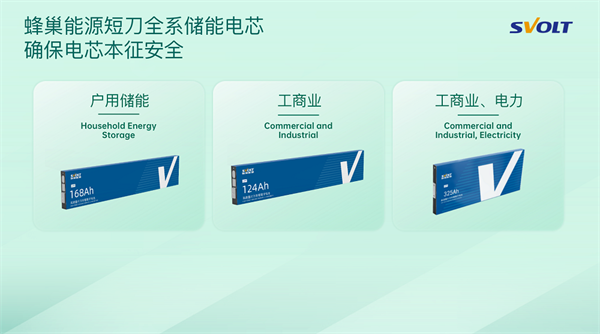 5月24日,在第十六届(2023)SNEC国际太阳能光伏与智慧能源(上海)大会暨展览会上,蜂巢能源发布了应用于电力、工商业和家庭三大场景的短刀全系储能电芯及产品,尤其是L500型325Ah电力储能专用电芯、L600型124Ah工商业储能专用电芯、L600型168Ah家庭储能专用电芯,以及厚度仅有66mm的全球超薄家庭储能、99KWh工商储能、325Ah液冷电力储能等引领行业趋势的全新储能系统产品解决方案,用车规级标准重新定义储能。