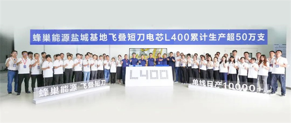 7月22日,蜂巢能源在盐城基地一期生产线现场举行仪式,庆祝其飞叠短刀L400电芯累计生产超50万支。从5月份第1支电芯下线到目前单线稳定日产超过10000支,累计生产50万支,蜂巢能源用时2个月,创造了公司迄今为止全新产品、全新产线的生产爬坡最快纪录。