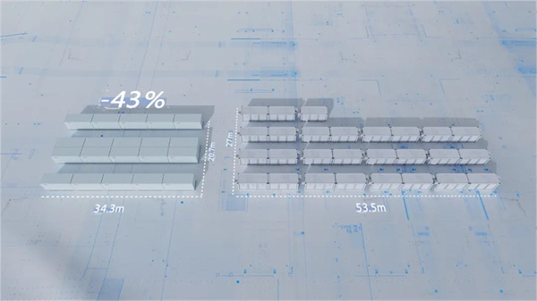 不仅如此,以常规项目容量100MW计算初始投资成本,大容量标准20尺5MWh液冷储能系统与主流3.72MWh产品相比,占地面积节省43%,成本节省26%,大幅度降低储能系统首次购置成本,降本作用凸显。