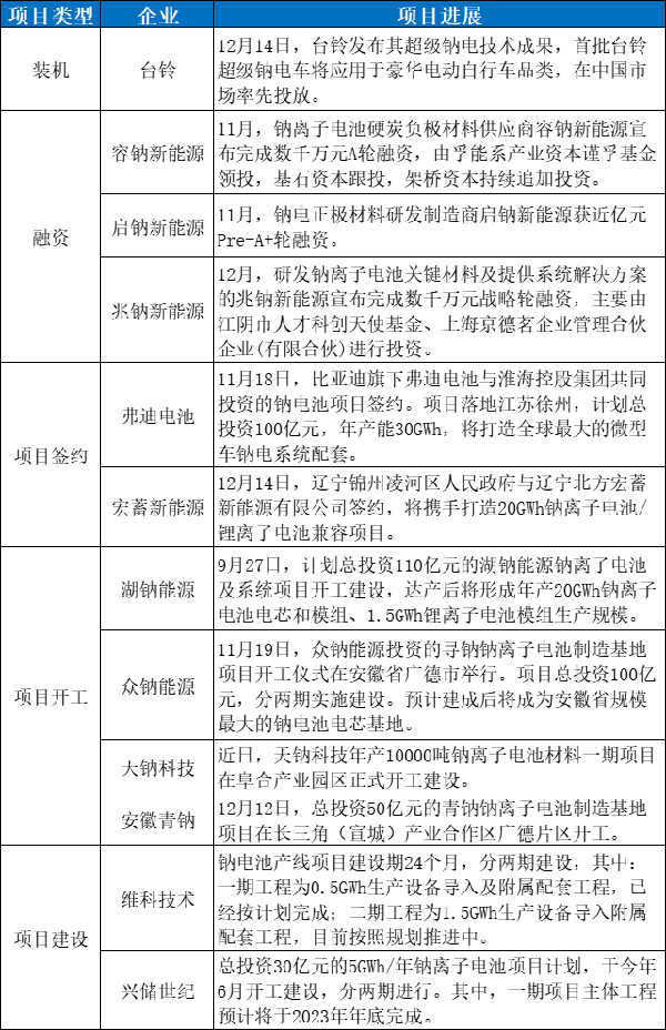 基于确定性的技术发展路线,以及多个市场高确定性的应用需求,国内越来越多的企业踏入钠电阵营,或加快钠电池产线和项目的落地,对“量产装机”也起到推动作用。