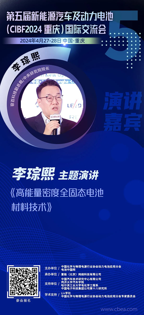 2024年4月27-28日,由中国化学与物理电源行业协会指导,动力电池应用分会与电池中国网共同主办的“第五届新能源汽车及动力电池(CIBF2024重庆)国际交流会”将在重庆召开。