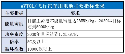 现阶段,预计eVTOL/飞行汽车将率先打开300公里以内的城际交通、旅游、紧急运输等需求市场。同时,eVTOL/飞行汽车对电池的需求主要集中在高安全性、高能量密度、高效能和轻量化等技术要求上,这些技术直接决定了eVTOL的安全性、续航里程、使用周期、载重等关键性能指标,甚至将影响eVTOL/飞行汽车的市场接受度。