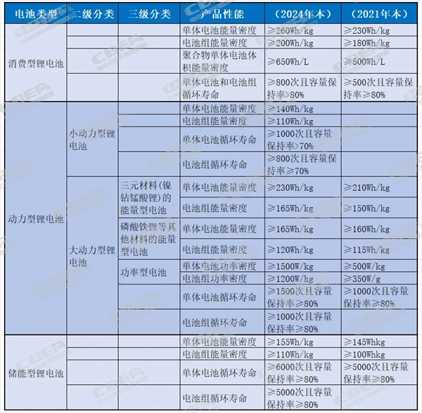 可以看出,对于消费类、动力型(包括小动力、大动力)、储能型电池,2024年本《规范条件》在2021年本基础上,其核心性能要求均进一步提高。