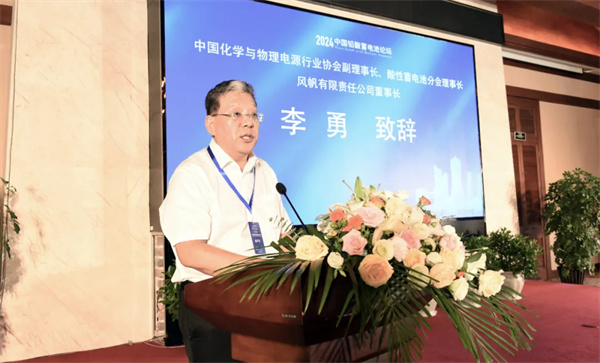 图为电源行业协会副理事长/酸性蓄电池分会理事长/风帆有限责任公司董事长李勇致辞