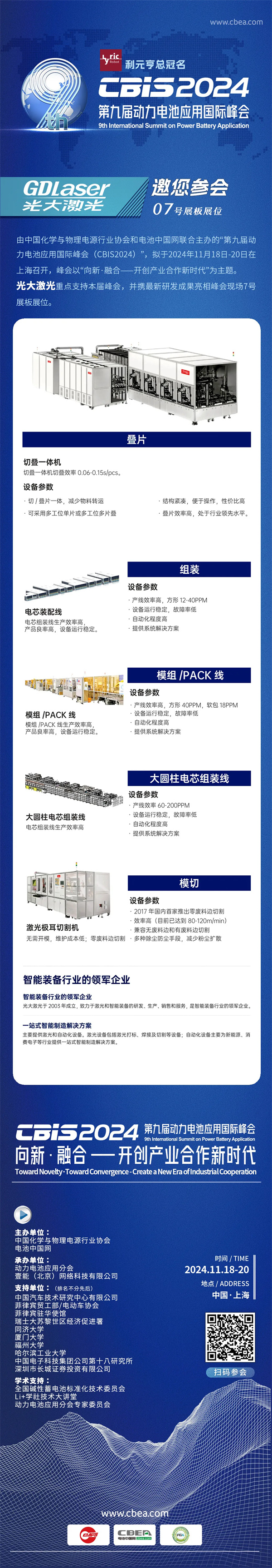 光大激光邀您参加第九届动力电池应用国际峰会(CBIS2024)