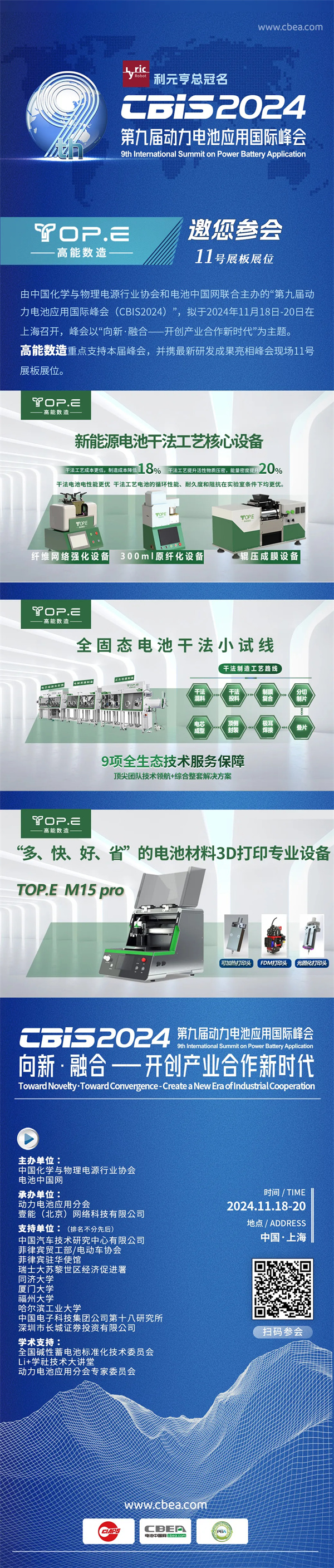 高能数造邀您参加第九届动力电池应用国际峰会(CBIS2024)