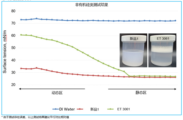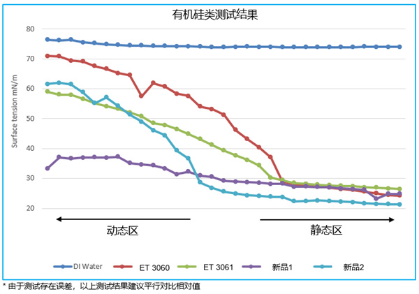 除了润湿分散剂以外,毕克化学的特种添加剂还包括了降低水性浆料表面张力的表面助剂。这一类助剂主要分为有机硅类和非有机硅类两种。有机硅润湿剂具有更强的降低静态表面张力能力,可以适用于低极性基材(隔膜或箔材)的涂布过程;而非硅类表面助剂则具有优异的降低动态表面张力能力,适用于浆料快速涂布的要求,并且具有快速自消泡能力。