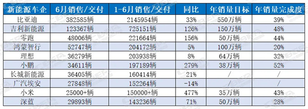 近日,国内多家新能源车企公布6月及上半年销量情况: