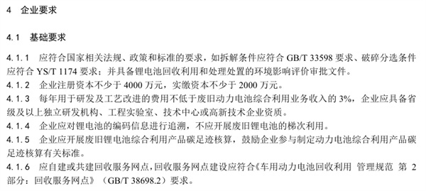 《锂电池回收综合利用企业管理规范》提及,相关企业每年用于研发及工艺改进的费用,应不低于废旧动力电池综合利用业务收入的3%。应对锂电池的编码信息进行追溯,不应开展废旧锂电池的梯次利用。