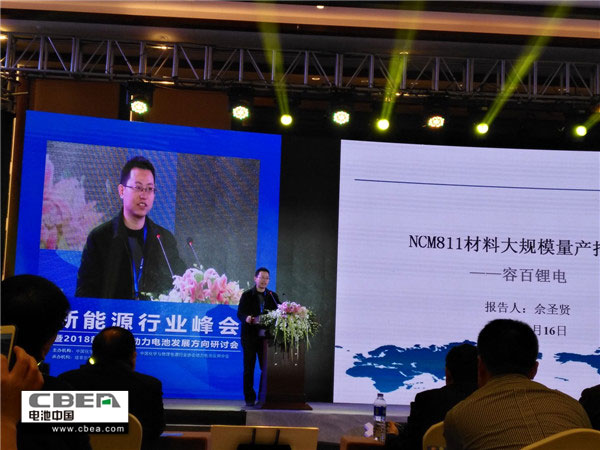 2018年1月16日,“‘独具匠心智造未来’新能源行业峰会暨2018新形势下动力电池发展方向研讨会”在南京举办。活动由中国化学与物理电源行业协会与动力电池应用分会联合主办,塔菲尔新能源科技有限公司承办。容百锂电总经理佘圣贤发表题为“NCM811材料大规模量产报告”的主旨演讲。