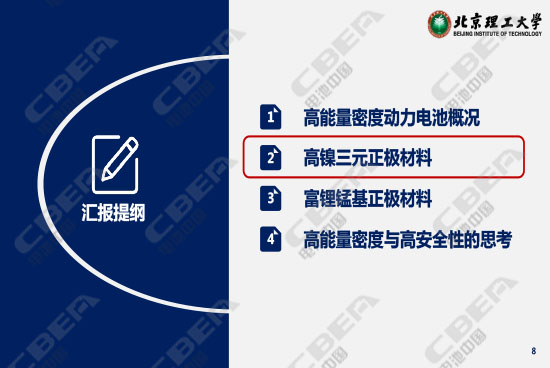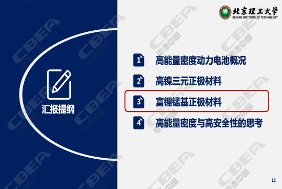 北京理工大学教授苏岳锋就“高能量密度动力电池关键材料与技术”作主旨演讲,分享了高镍三元正极材料和富锂锰基正极材料、以及如何在保证安全性的前提下提升电池能量密度。