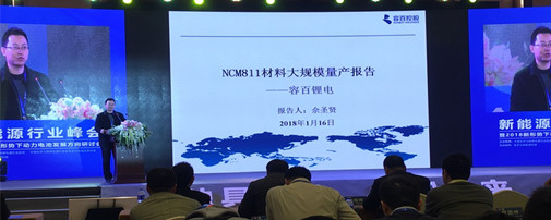 容百锂电总经理佘圣贤在“‘独具匠心智造未来’新能源行业峰会暨2018新形势下动力电池发展方向研讨会”上发表题为“NCM811材料大规模量产报告”的主旨演讲。 >>>More