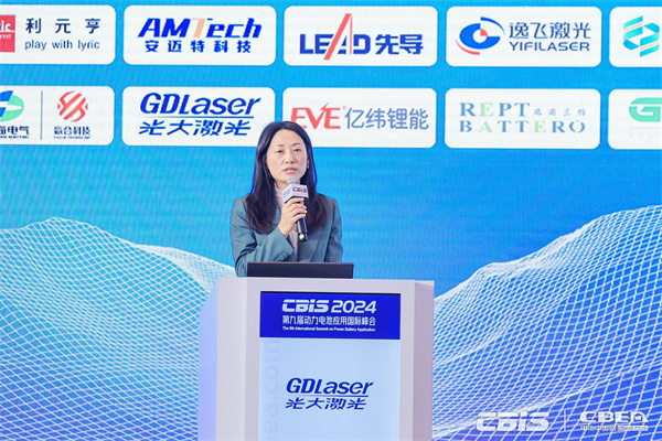 图为欣旺达动力科技股份有限公司电芯产品总监张友为作主题演讲