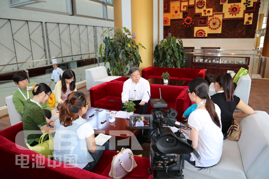 2014年6月23日,由国家能源局指导,中关村储能产业技术联盟(CNESA)与杜塞尔多夫展览(上海)有限公司共同主办的储能行业第三届年度高峰论坛——“储能国际峰会2014”在北京国家会议中心隆重开幕。图为茶歇期间,原中国电力企业联合会秘书长王永干先生接受记者采访。