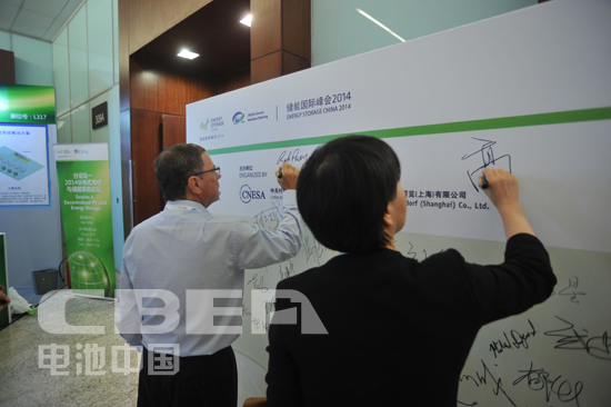 2014年6月23日,由国家能源局指导,中关村储能产业技术联盟(CNESA)与杜塞尔多夫展览(上海)有限公司共同主办的储能行业第三届年度高峰论坛——“储能国际峰会2014”在北京国家会议中心召开,图为嘉宾签到。