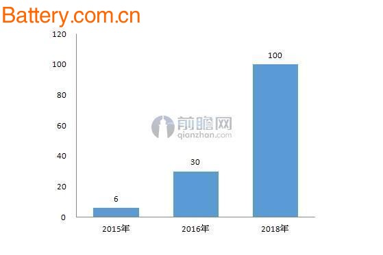 2015-2018年中国石墨烯产业产值规模及预测(单位:亿元)