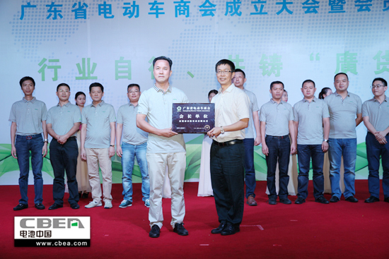 7月13日下午,广东省电动车商会成立大会暨第一次会员扩大会议在广州白云国际会议中心隆重举行。图为授牌仪式。