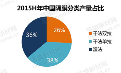 按隔膜种类来看,2015年上半年湿法隔膜的占比提升较大;原因有: